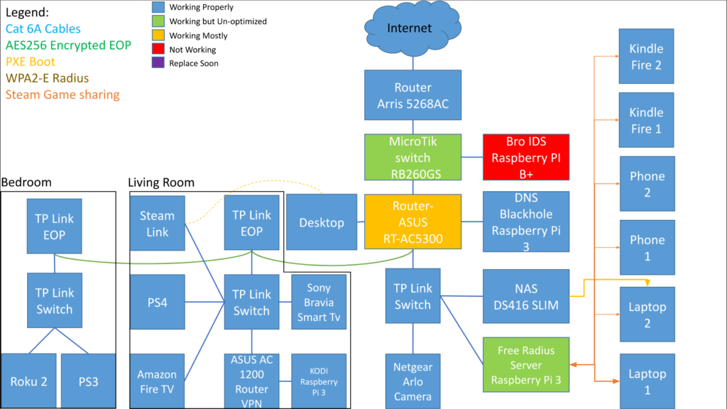 My house still wasn’t as interconnected as it is now. At this point I was mainly focused with setting up security and getting every device I could off Wi-Fi and onto ethernet. There were unfortunately some things I couldn’t get working. While I got the PXE boot working it wasn’t working the way I wanted. I would eventually scrap it in my next iteration.