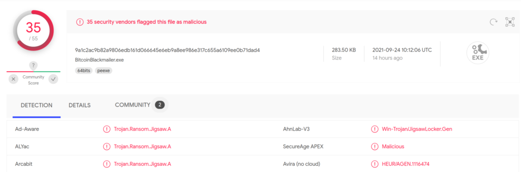 With the file successfully extracted we can now take it over to VirusTotal and upload it to confirm our previous suspicions.