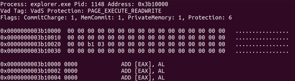 Malfind is a great tool for finding process hallowing and executables loaded into process memory. Whenever I’m starting a case with no information I’ll almost always run malfind right off the bat to see what it finds. Unfortunately malfind isn’t always the most accurate and will sometimes hit on NOP sleds. NOP sleds, or large amounts of No Operations instructions can sometimes be an indicator of malware attempting to evade detection by changing its MD5 hash or bypassing AV that doesn’t look at files over a certain size.