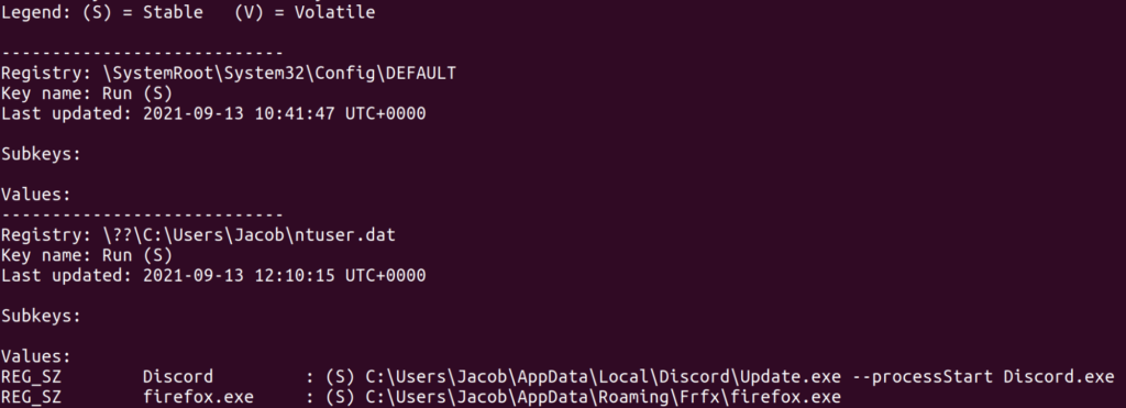 When hunting for malware one of the first places you should check is the Registry Run key. Thankfully volatility has an easy way to check everything set to autorun with the computer with the autorun command.