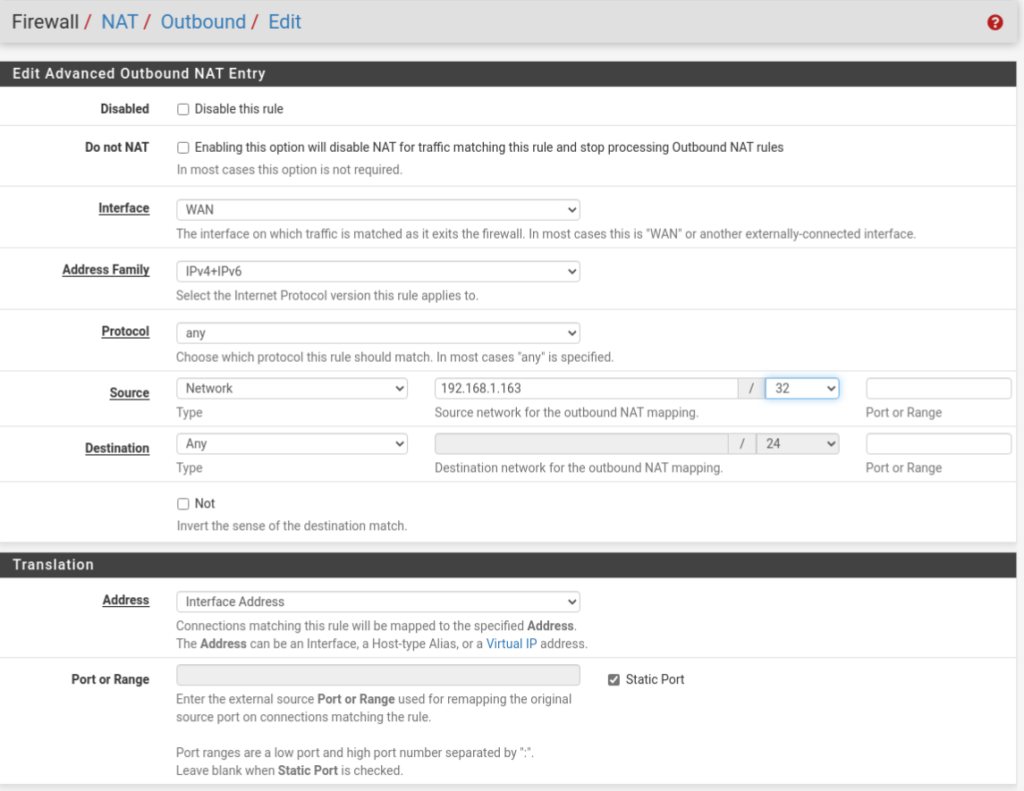 This might seem silly but it helps when you have a lot of clients as it reduces the chances of collision where two devices are using the same source port simultaneously and now the router has to figure out who get’s what. pfSense, and a lot of home routers, use PAT by default now.