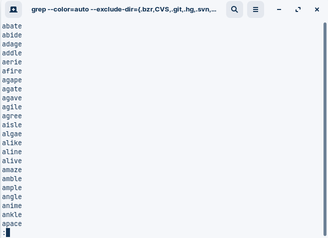Grep is a wonderful tool used for advanced searching and pattern matching. So let’s use Grep to solve Wordle;