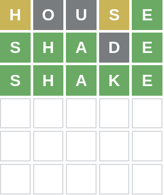 Let’s pick a word that meets our requirements. Scrolling down the list we find the first word with both an S and an H in it that also ends in E: Shade.