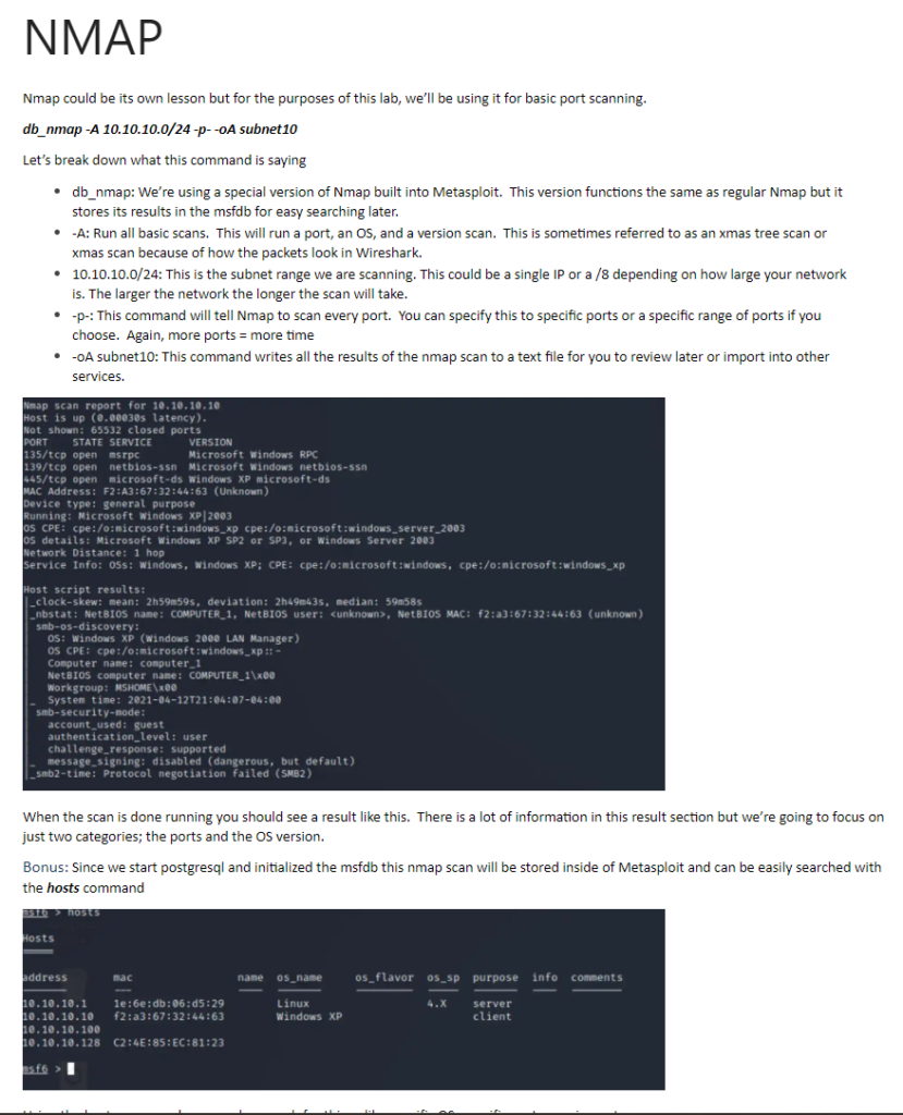 It’s still a pretty basic lab focused on just teaching the basics of hacking. The lab focuses on using Metasploit, following the MITRE kill chain, thinking like a hacker, and using tools to gain access.